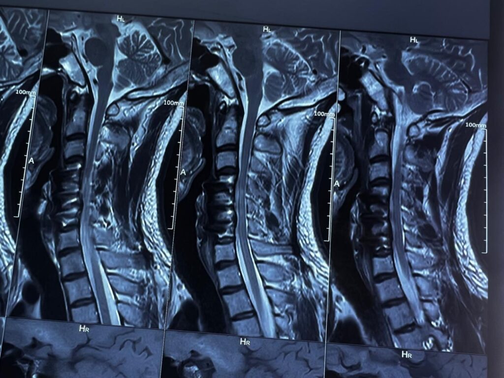 Compression of the spinal cord in the neck area, commonly caused by disc prolapse, bone spurs, or spinal degeneration,results in cervical myelopathy.